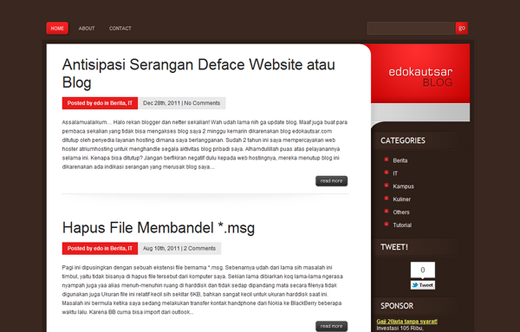 Selain itu pada postingan ini sekalian saya menampilkan wajah baru di blog ini, yang tadinya dihiasi dengan warna merah berbalut coklat tua yang telah menjadi wajah alias theme selama hampir 2 tahun. Seperti tampak pada screenshot di bawah ini :